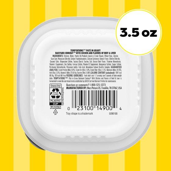 Temptations Pate in Gravy Backyard Cookout Flavor Adult Wet Cat Food, 3.5 oz Tray