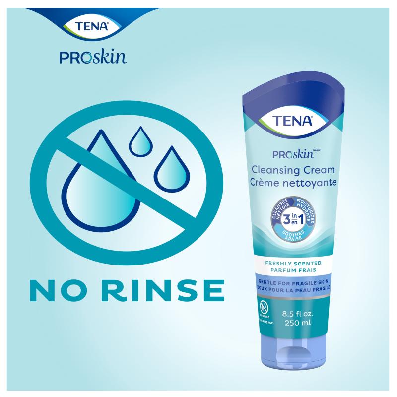 Directions: Apply a quarter-sized amount of TENA Cleansing Cream to wet wipe, dry wipe, damp washcloth or bathing glove. Wash area. Turn cloth and wipe away residue. No rinsing or drying necessary.
