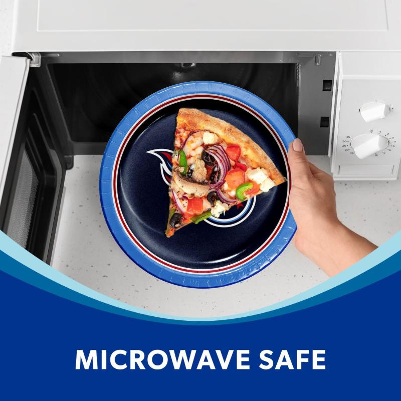 Football season is approaching so make sure you're fully stocked and ready for guests. These NFL 10" paper plates are microwave safe, if you want to reheat your food later on. The 85 count paper plates make cleanup easy whether you're hosting a party at home or tailgating with friends—simply use them and toss them in the trash when finished.
