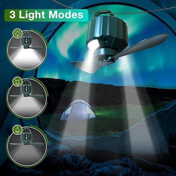 Tent Ceiling Fan, Portable Tent Fan with Lights and Remote Control, Mobile Power Supply, USB Battery Powered Camping Fan with Hookup for Canopy Tent, RV