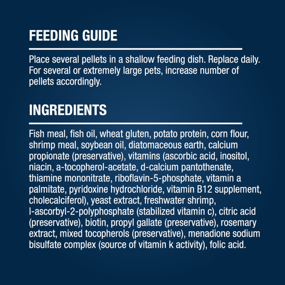 - USAGE: Place several pellets in a shallow feeding dish – replace daily.