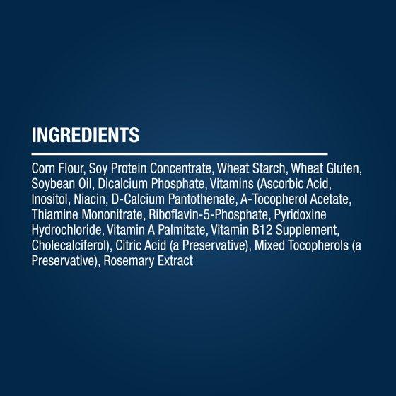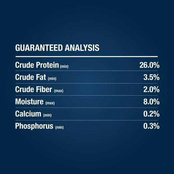 Wheat Starch,Fish Meal,Corn Flour,Feeding Oat Meal,Soy Protein Concentrate,Wheat Gluten,Wheat Germ Meal,Soybean Oil,Monobasic Calcium Phosphate,Algae Meal,Ascorbic Acid (Source of Vit. C),Inositol,Niacin,L-Ascorbyl-2-Polyphosphate (Stabilized Vit. C),D-Calcium Pantothenate,A-Tocopherol-Acetate,Riboflavin-5-Phosphate,Thiamine Mononitrate,Pyridoxine Hydrochloride,Vitamin A Palmitate,Vit. B12 Supplement,Cholecalciferol (Source of Vit. D3),Manganese Sulfate,Zinc Sulfate,Ferrous Sulfate,Cobalt Acetate,Color includes: Yellow 5 Lake,Ethoxyquin (Anti-Oxidant) as a preservative