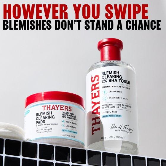 - Alcohol-Free Blemish Toner Pads for Face- Thayers Acne Pads clear acne blemishes, blackheads and whiteheads, while actively preventing new breakouts. Clear acne-prone skin without wrecking your skin's moisture barrier