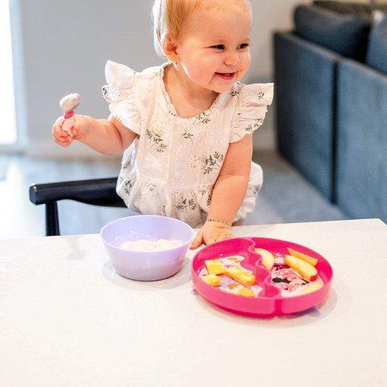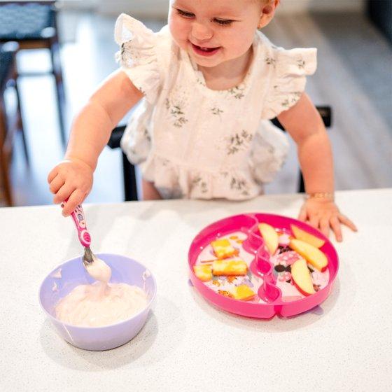 - Easy Scoops: The wavy wall of the divided plate and the deep sides of the bowl make scooping easier for first time self-feeders, making this set an essential part of your baby feeding supplies