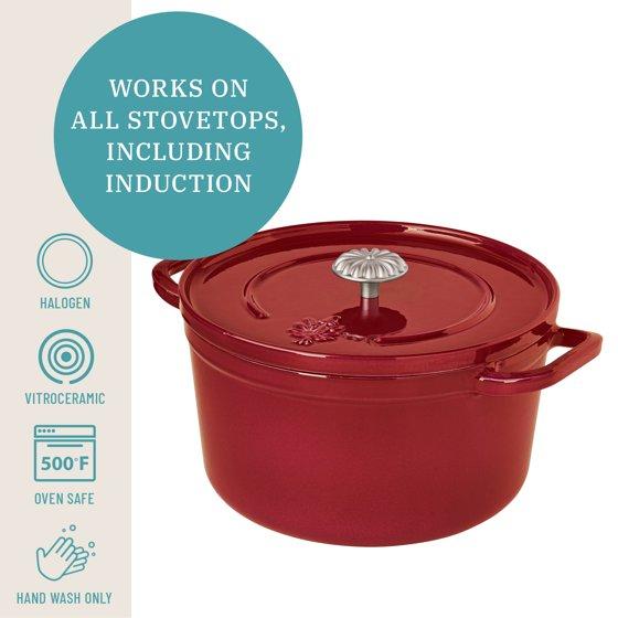 - 5-quart capacity ideal for slow-cooking, braising, baking, and more