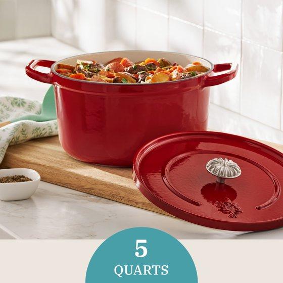 The Pioneer Woman 5-Quart Enamel Cast Iron Dutch Oven with Lid, Red