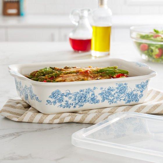 - The Pioneer Woman Agatha Small Rectangular Baker with Lid, 7" x 11"