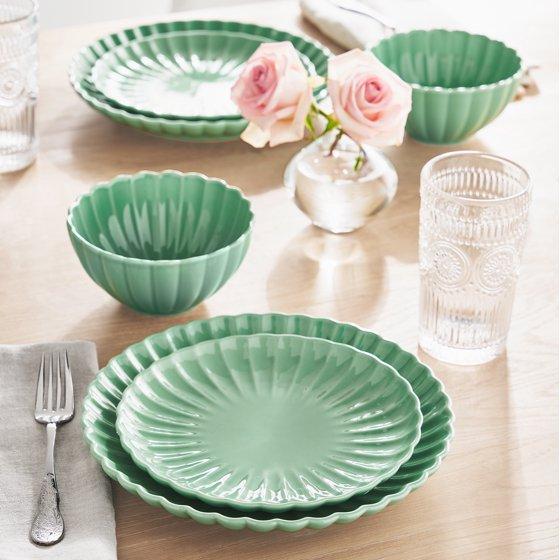 - The Pioneer Woman Colette 12-Piece Stoneware Dinnerware Set, Green