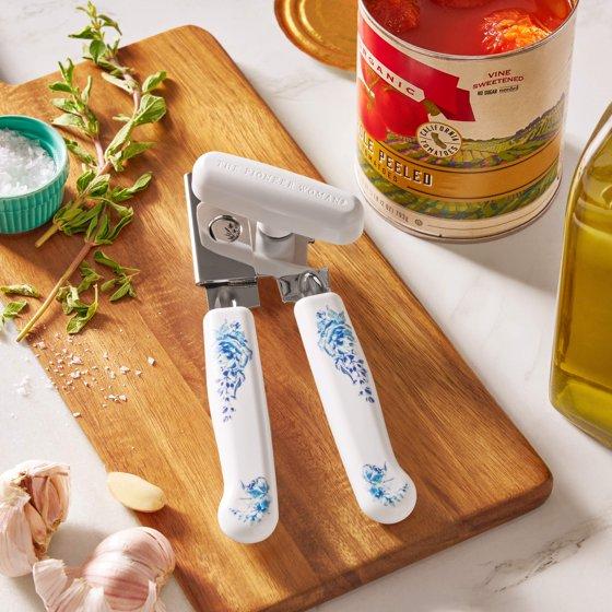 The Pioneer Woman Delilah Can Opener Stainless Steel Portable Can Opener with Soft Grip Decal Handel,Blue
