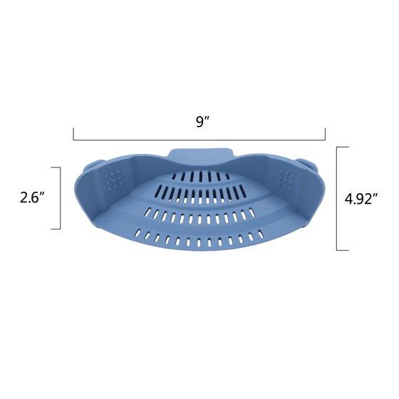 The Pioneer Woman Clip On Silicone Strainer is a versatile and practical kitchen accessory. This strainer is made from durable silicone material, ensuring long-lasting use. Its clip-on design makes it easy to attach to pots, pans or bowls, helping to strain pasta, vegetables, and more without the need for an extra colander. With a lovely blue color, this strainer adds a touch of charm to any kitchen. The Pioneer Woman Dahlia Clip On Silicone Strainer is ideal for everyday use or for special cooking occasions.