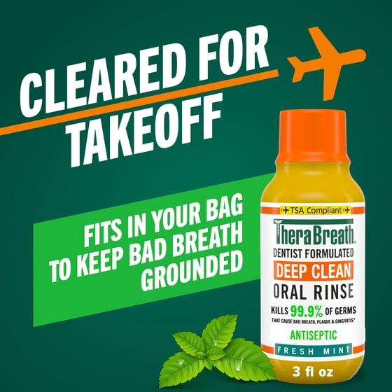 - 3 oz TSA Compliant Travel Size TheraBreath Deep Clean Mouthwash; Dentist Formulated; Fresh Mint Flavor; Alcohol Free