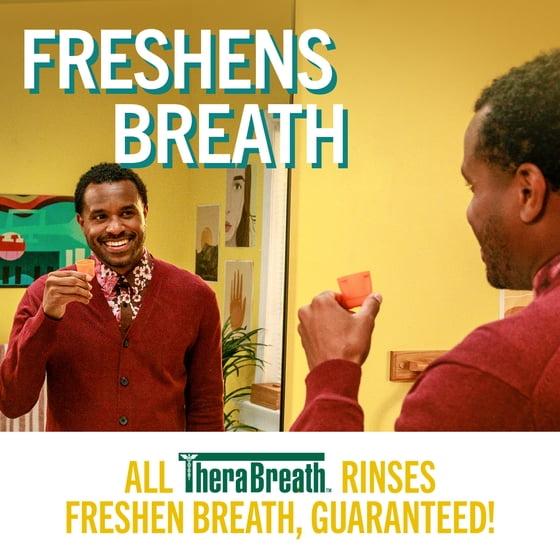 - For best results, swish TheraBreath Rinse for 1 minute after brushing your teeth with toothpaste then spit out; do not eat or drink for 30 minutes afterwards