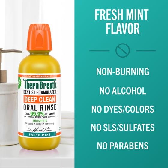 TheraBreath Deep Clean Antiseptic Mouthwash, Antigingivitis, Fresh Mint Flavor Dentist Formulated, Alcohol Free, TSA Compliant Travel Size, 3 fl oz
