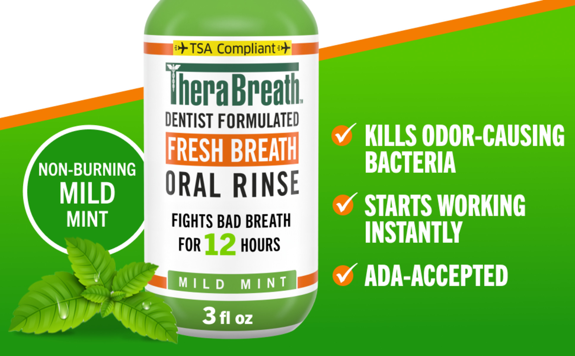 - FIGHTS BAD BREATH: One 3 fl oz TSA-compliant travel size TheraBreath Fresh Breath Mouthwash that fights bad breath for 24 hours when used every 12 hours after brushing and flossing