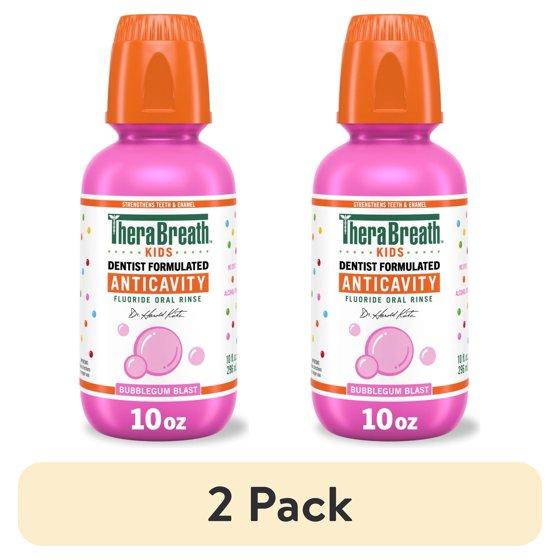 (2 pack) TheraBreath Kids Anticavity Fluoride Oral Rinse, Strengthens Teeth & Enamel, Alcohol Free & Dye Free, Certified Organic Bubblegum Blast Flavor, 10 fl oz