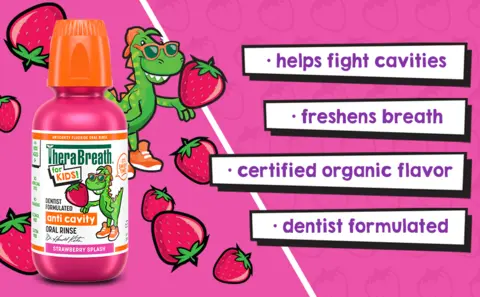 TheraBreath Kids Mouthwash with Fluoride, Organic Strawberry Splash, Anticavity, 10 fl oz