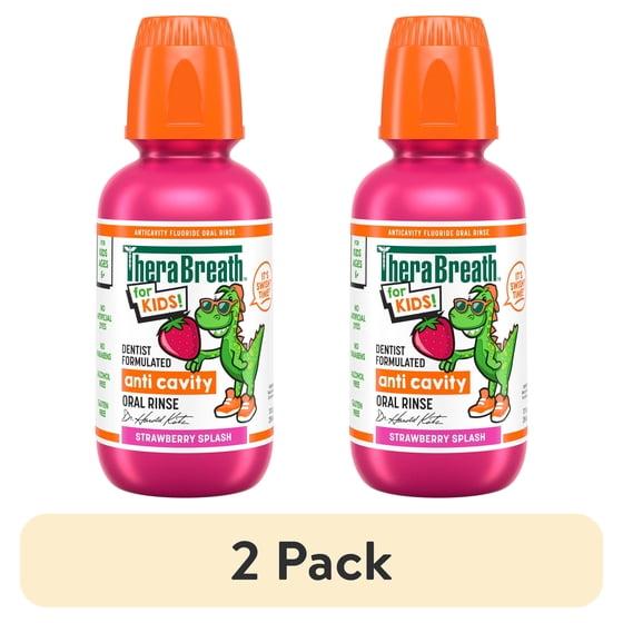(2 pack) TheraBreath Kids Mouthwash with Fluoride, Organic Strawberry Splash, Anticavity, 10 fl oz