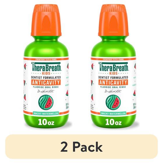 (2 pack) TheraBreath Kids Mouthwash with Fluoride, Organic Wacky Watermelon, Anticavity, 10 fl oz