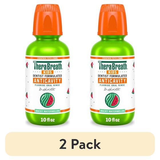(2 pack) TheraBreath Kids Mouthwash with Fluoride, Organic Wacky Watermelon, Anticavity, 10 fl oz