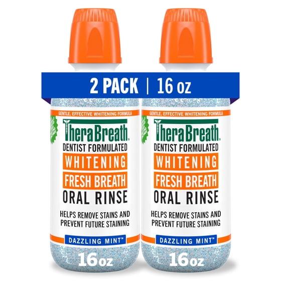 TheraBreath Whitening Mouthwash, Dazzling Mint, Dentist Formulated, 16 Fl Oz, 2 Pack