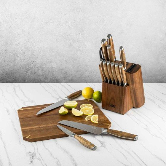 Thyme & Table 16-Piece Acacia Wood Knife Block Set with Knife Sharpener