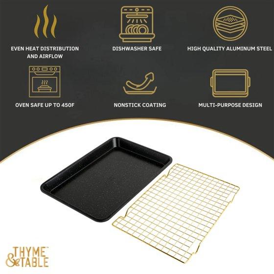 Thyme & Table Non-Stick Rectangle Baking Sheet with Gold Cooling Rack - Black