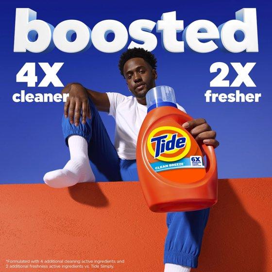 - 6X BOOSTED CLEAN: Tide liquid laundry detergent is specially engineered to be 4X cleaner and 2X fresher, formulated with 4 additional cleaning active ingredients and 2 additional freshness active ingredients versus Tide Simply liquid detergent