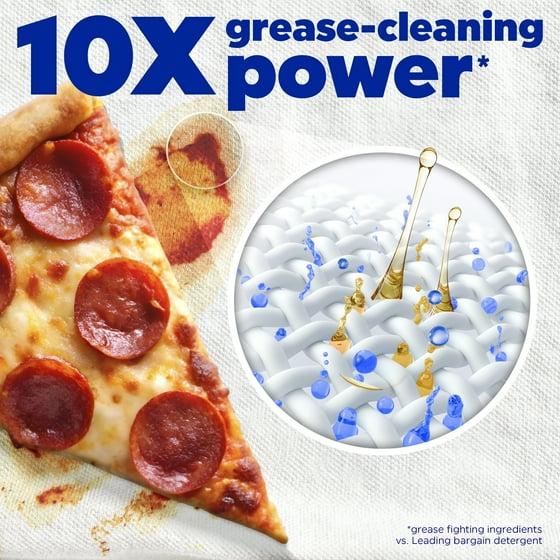 - TOUGH ON STAINS: Tide’s laundry soap works on 100% of common stains plus has 10X the grease fighting ingredients versus leading bargain detergent. Don't settle for "almost clean", get Boosted clean with Tide washing detergent, every load, every time