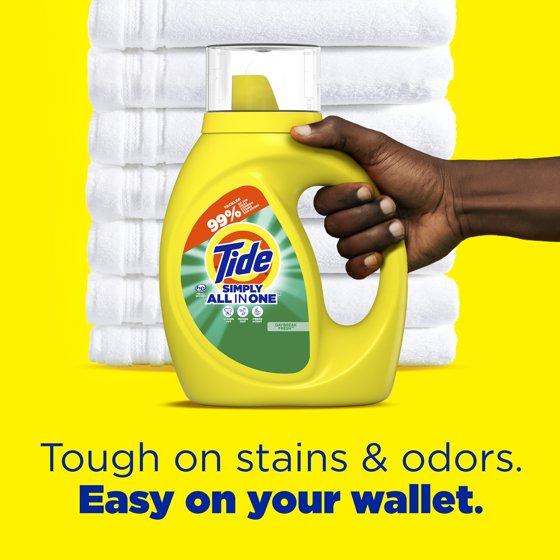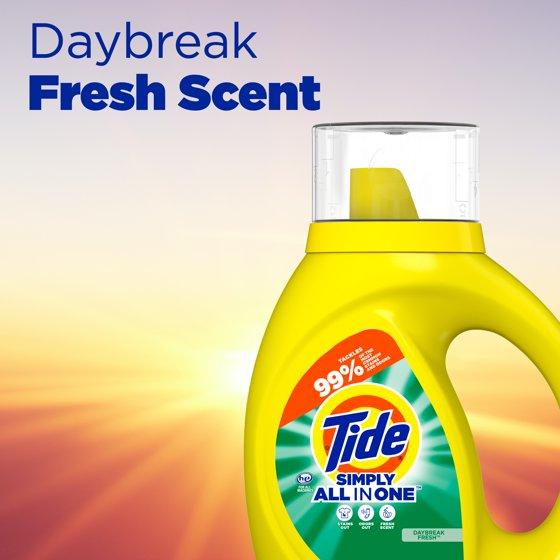 - Includes one 84 oz Jug of Tide Simply Liquid Laundry Detergent, in the Daybreak Fresh scent.