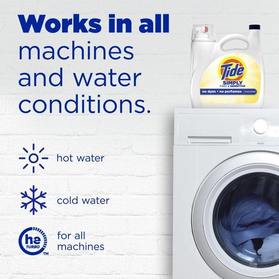 - Includes one 117 fl oz Jug of Tide Simply Liquid Laundry Detergent in the Free & Sensitive Scent, good for 89 loads