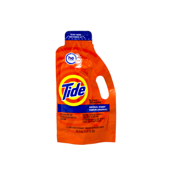 - That's because the concentrated, fresh formula gives you the same stain-removing power as your normal washing detergent. The 1.31 fluid ounce travel size packet is enough for one load of laundry and can be stored easily for travel. It also meets airline guidelines for carry-on liquids, so you don't even have to check your bag. Get more out of your laundry soap with Tide.