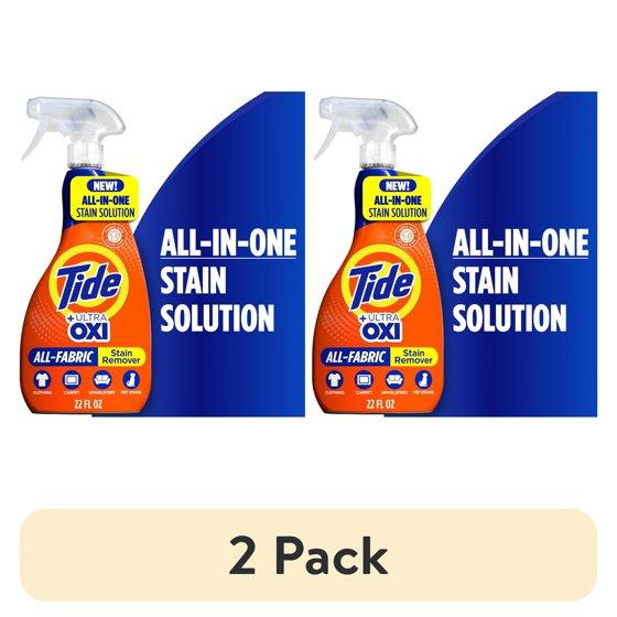 - NEW TIDE + ULTRA OXI ALL-FABRIC STAIN REMOVER (22 oz): One powerful spray for life’s toughest messes. Tide’s peroxide-based Ultra Oxi formula is designed to remove stains from clothes, carpets, upholstery, and even pet messes—making it your all-in-one stain solution.
