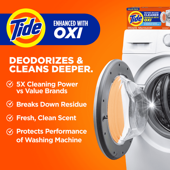 - ODOR ELIMINATOR: Tide Washing Machine Cleaner and Deodorizer penetrates, lifts away, and eliminates odor-causing residue and deposits with its specially designed surface active ingredients and the cleaning power of Oxi plus TAED. TAED granules help to deep clean even in hard water