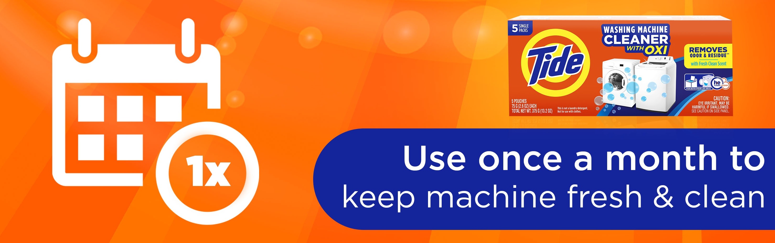 - TIDE WASHING MACHINE CLEANER: You will receive one (1) pack of 4 Tide Washing Machine Cleaner powder packets, activating 20% faster than tablets, for 4 months of cleaning tough residues and odors