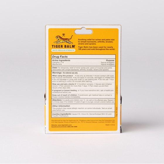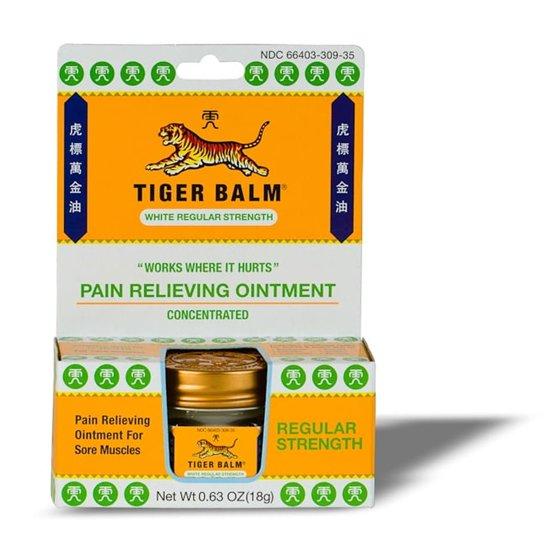 Tiger Balm Regular Strength Pain Relieving Ointment, in a 0.63 oz jar, offers effective relief for backaches, strains, and sore muscles with its non-staining formula. Infused with a potent blend of herbal ingredients like camphor and menthol, it provides fast, warming comfort that lasts for hours. It is paraben free. Feel the difference upon application, knowing it's been trusted for over a century for herbal pain relief. Whether you're dealing with muscle soreness or stiffness, Tiger Balm Regular Strength is gentle on sensitive skin, making it an ideal choice for anyone seeking reliable relief. Experience the soothing power of Tiger Balm today and discover its legacy of natural pain relief mastery.