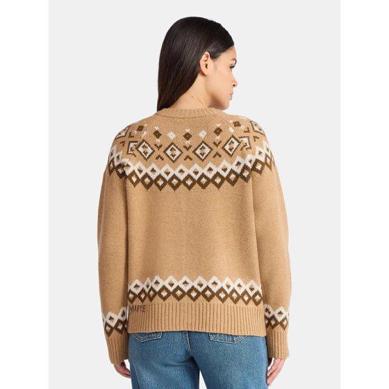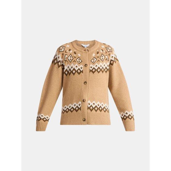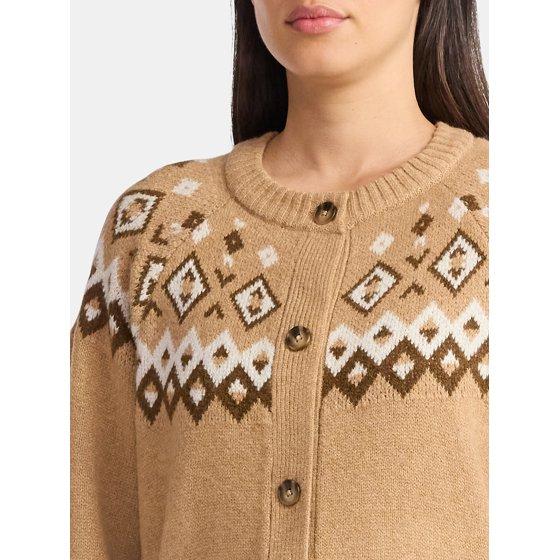Time and Tru Women's Fair Isle Cardigan Sweater, Midweight, Size XS-XXXL