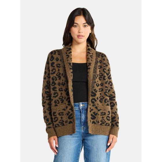 Time and Tru Women's Fuzzy Cardigan Sweater, Lightweight, Sizes XS-XXXL