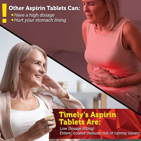 - Were Obsessed with Quality Its what guides us through every stage of production. 3rd party tested and made to exacting standards, Timely 81mg aspirin coated tablets never cut corners when it comes to your wellbeing.
