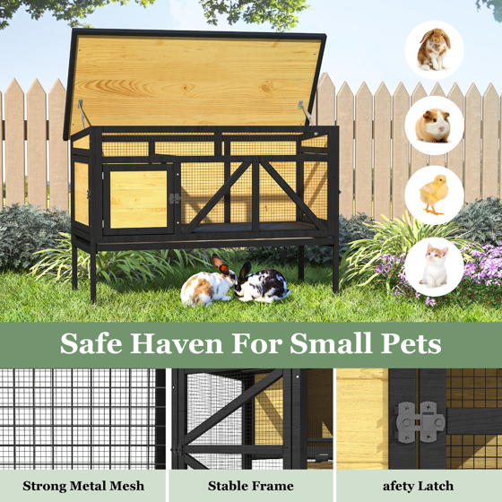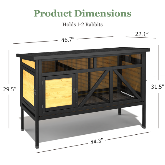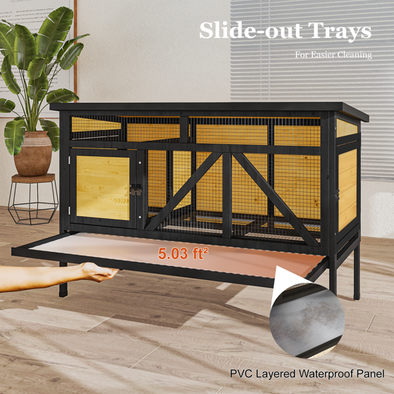TIMHAKA 46.7" Elevated Rabbit Hutch, Indoor & Outdoor Wooden Bunny Cage w/ Removable Tray, Waterproof Roof for Small-Medium Animals