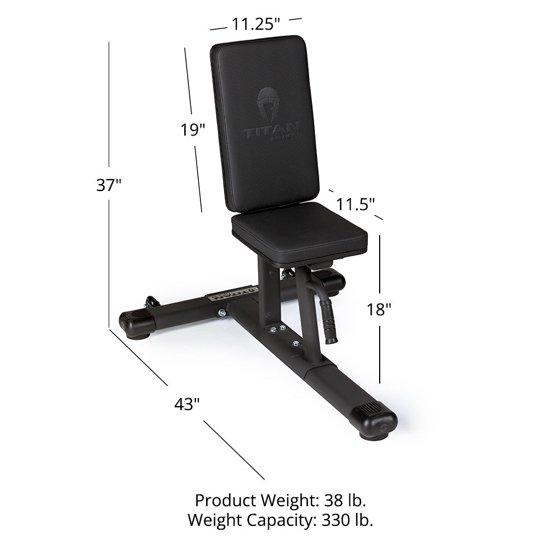 Titan Fitness Seated Stationary Bench, Rated 330 LB, Ergonomic Angled Back, Comfortable HeftyGrip Padding, Front Handle, Rear Wheels for Easy Transport, Utility Upright Weight Bench