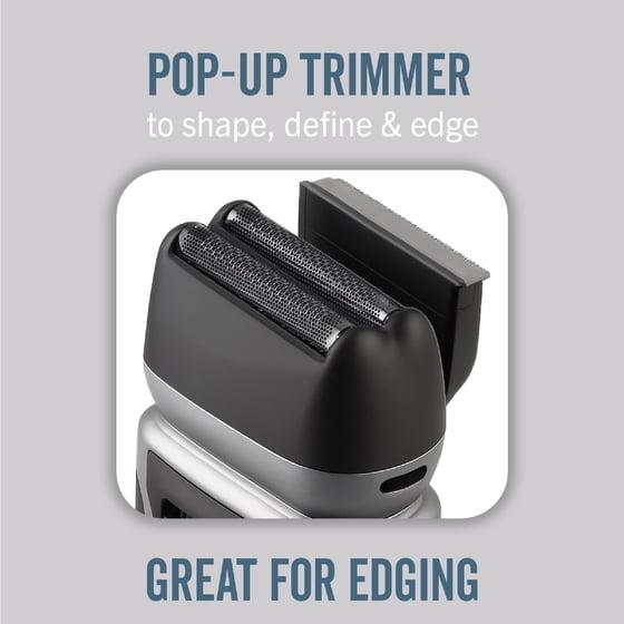 - PRECISION TRIMMER: Built-in pop-up trimmer shapes, defines, and edges for a sharp, detailed finish