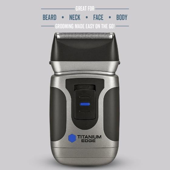 Titanium Edge Beard & Body Compact Shaver – Men’s Electric Groomer for Face, Neck & Body – Pop-Up Trimmer, Titanium Blade, Hypoallergenic, Travel Ready