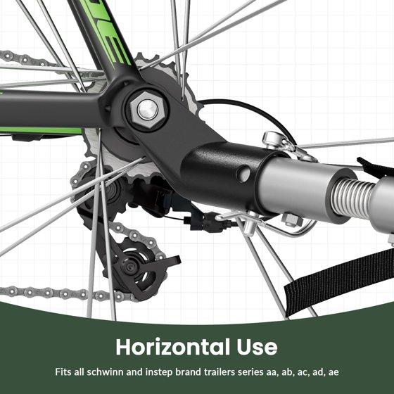 - Portable design with vertical and horizontal holes on the trailer coupler, ensuring compatibility with various bike trailer coupler hole orientations