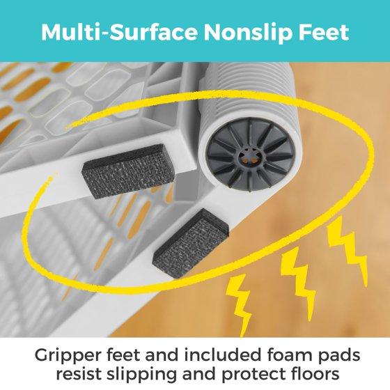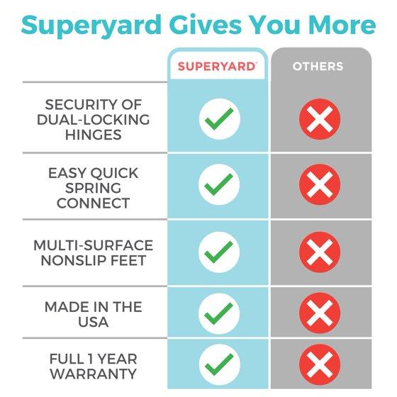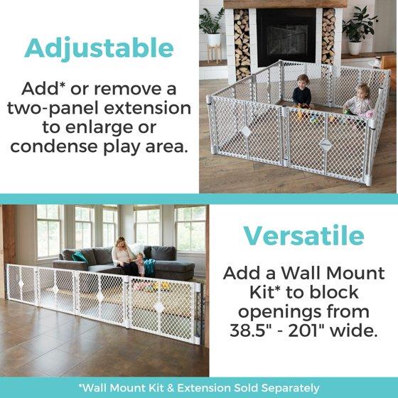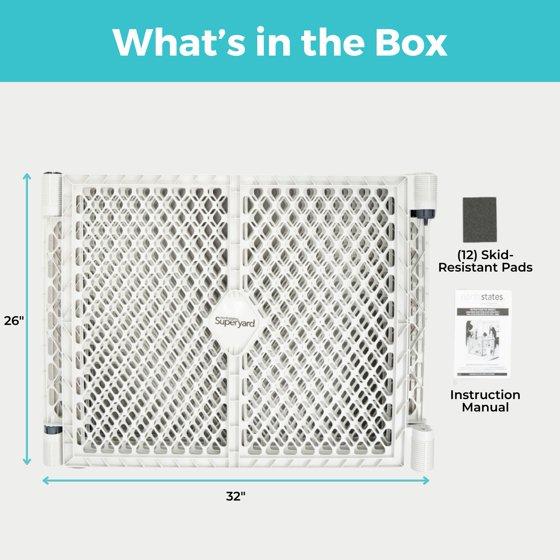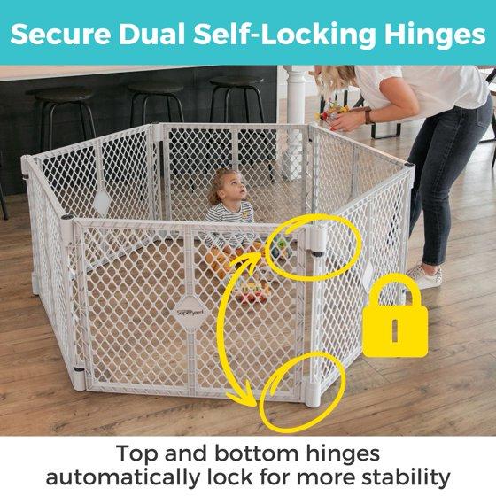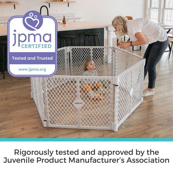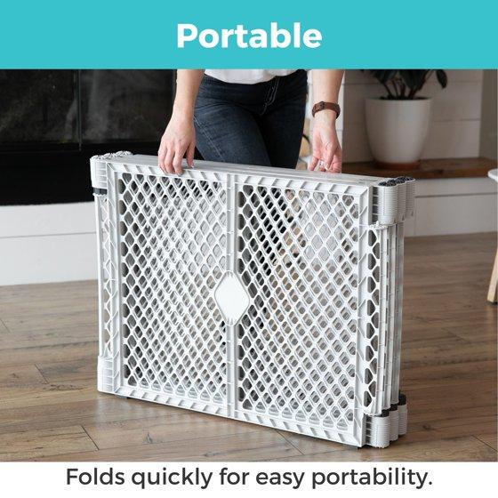 The Toddleroo by North States Superyard Explorer Play Yard creates a safe play area for your little explorer. This 6-panel freestanding baby play pen is designed with pre-connected interlocking panels for easy setup: simply pull the panels out of the box, unfold them, and connect them. It even folds up like an accordion, so you can bring the fun with you anywhere, inside or outside. The Toddleroo Superyard Explorer can be used inside on a variety of floor surfaces, encloses up to 18.5 square feet, and stands 26 inches tall. Plus, the light gray color will stylishly blend into your home décor. As your little one becomes more adventurous, you'll love the ease of setting up this play yard anytime, anywhere.