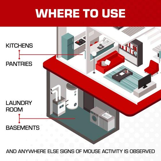 - Place these pest control traps along the walls of rooms or cupboards where rodent activity is suspected, such as kitchens, basements, or garages