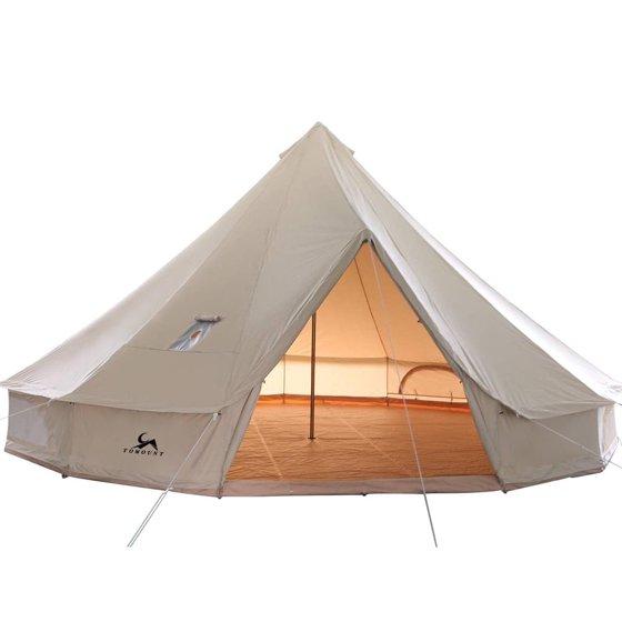 TOMOUNT Canvas Tent Bell Tent Yurt with Stove Jack Zipped Floor for Glamping 5m/16.4ft Dia
