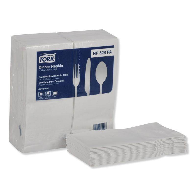 Tork Advanced Soft 1/8 Fold 2-Ply White Dinner Napkins, 28 pks, 100 napkins/pk.