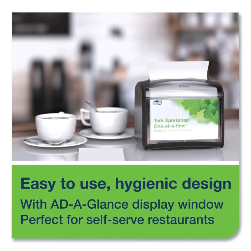 Tork Xpressnap Interfold Dispenser Napkins impress with their quality and one-at-a-time dispensing design, which improves hygiene and reduces consumption. These napkins are larger than competitors', offering superior strength, absorbency, and quality. Made from recycled fibers, they are EcoLogo Certified, EPA Compliant, and Green Seal Certified. The paper packaging protects napkins during transit and storage. Each carton includes 12 packs of 500 napkins, providing ample supply for high-traffic areas. The easy handling carry box enhances convenience, making these napkins a practical and eco-friendly choice. The one-at-a-time dispensing method ensures that patrons touch only the napkin they use, thereby improving personal hygiene and reducing waste. This feature is particularly beneficial in busy restaurants where maintaining hygiene standards is crucial. Additionally, the larger size of the napkins compared to major competitors means that fewer napkins are needed per use, further contributing to cost savings and environmental sustainability. The Tork® Xpressnap Interfold Dispenser Napkins are an excellent choice for any establishment looking to enhance hygiene, reduce waste, and provide a high-quality dining experience.