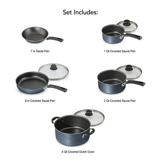 - Affordable 9-piece nonstick cookware set with essential fry pans, saucepans, and Dutch oven.