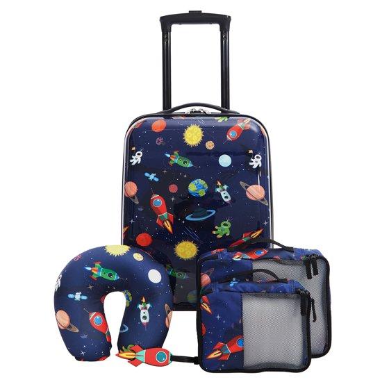 Travelers Club 5-Piece Kid's Hard Side Luggage Travel Set with 18" Spinner Rolling Carry-on- Space
